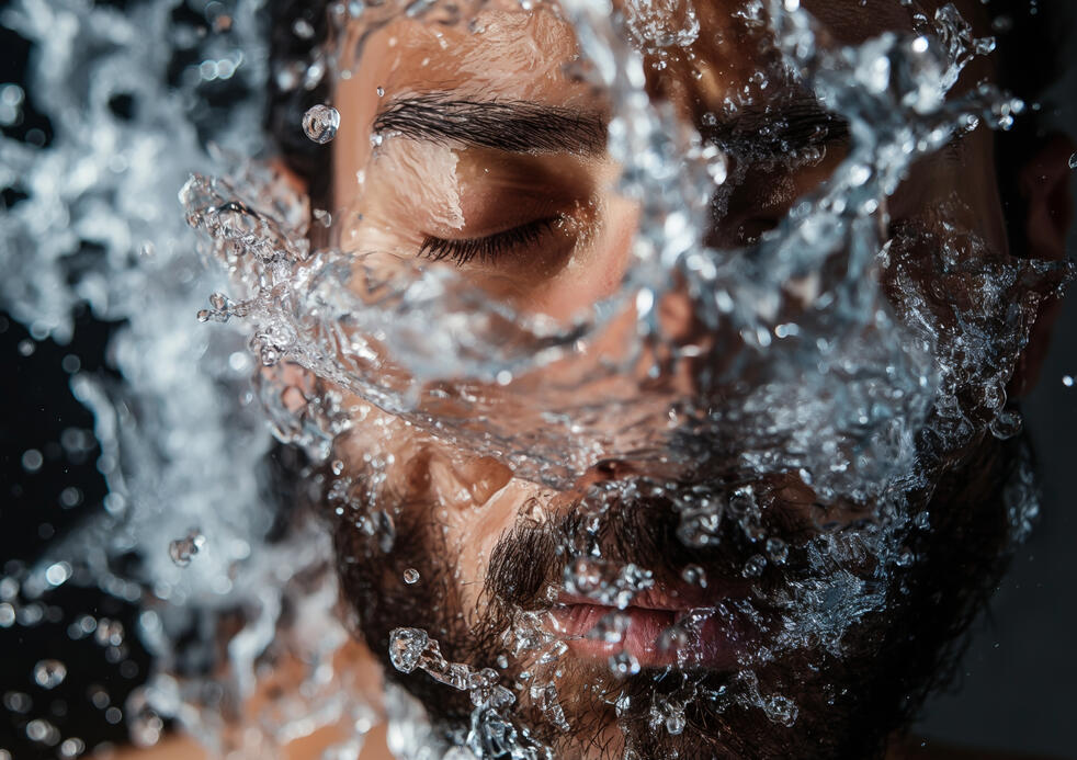 Masajea sobre el rostro seco para disolver el aceite y la suciedad de la superficie.